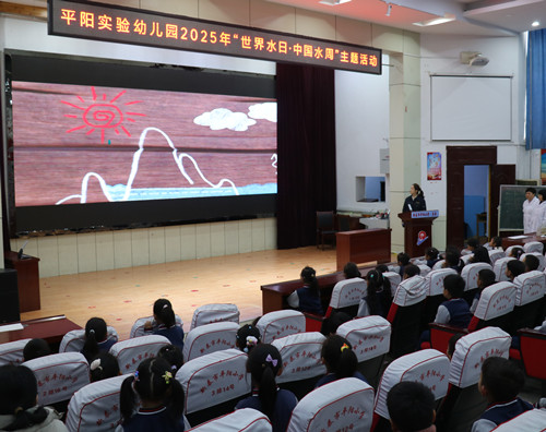 圖為:公司工作人員進(jìn)校園進(jìn)行節(jié)水宣傳